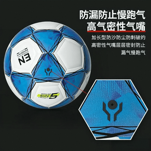 这款足球的气嘴设计非常专业,能够有效防止漏气,并且具备防水功能,使用起来非常贴心。32块球皮的结构设计,确保了飞行轨迹的稳定性,传球和射门的精准度也得到了提升。整体来看,细节处理得相当到位。